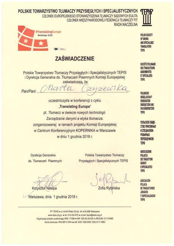 W ramach działalności dydaktycznej prowadzę różne zajęcia dla Studentów kierunków lingwistycznych i translatorskich, także podyplomowych dla tłumaczy przysięgłych i specjalistycznych. Są to przede wszystkim warsztaty tłumaczeniowe (pisemne) tekstów użytkowych oraz specjalistycznych (w tym prawniczych i ekonomicznych) oraz wstęp do translatoryki. Biorę udział w licznych konferencjach (min. Norma a uzus (Poznań), Medius Currens (Toruń), W dialogu języków i kultur (Warszawa), Słowa klucze (Warszawa), Linguistische Treffen in Wrocław, Konferencja PT TEPIS/Warsztaty Przekładu Specjalistycznego, Forum Kultury Słowa, Translating Europe). Współorganizuję także konferencje językoznawcze i translatoryczne (np. Słowa klucze, Konferencja PT TEPIS/Warsztaty Przekładu Specjalistycznego). Nieustannie doskonalę swoje umiejętności, a zdobytą dotychczas wiedzę chętnie przekazuję Studentom.